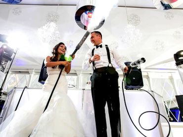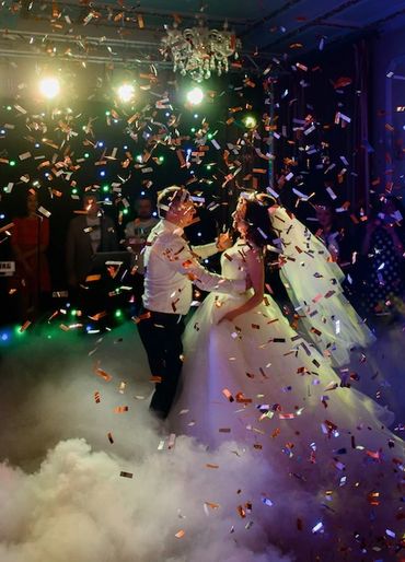 We can incorporate special effects such as slow motion, filters, music, confetti, indoor cold sparks, smoke, dancing on the clouds fog effect, and more!